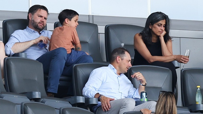 JD Vance and Usha Vance's marriage has come under a ton of scrutiny. Divorce rumors abounded after JD's Mother's Day post on social media, which was super generic and didn't even namecheck Usha. In contrast, for Father's Day, Usha tagged JD in her Instagram post, and specifically mentioned all the things he was doing with their children that day. She also posted three photos of JD and their kids. In a June 2025 interview with Meghan McCain, things got even more awkward when Usha revealed a strange disconnect with JD, revealing that they aren't necessarily in sync with how many kids they ultimately want. Now, to top things off, as Usha, JD, and their kids watched a recent sporting event, the second lady appeared rather downcast at moments.