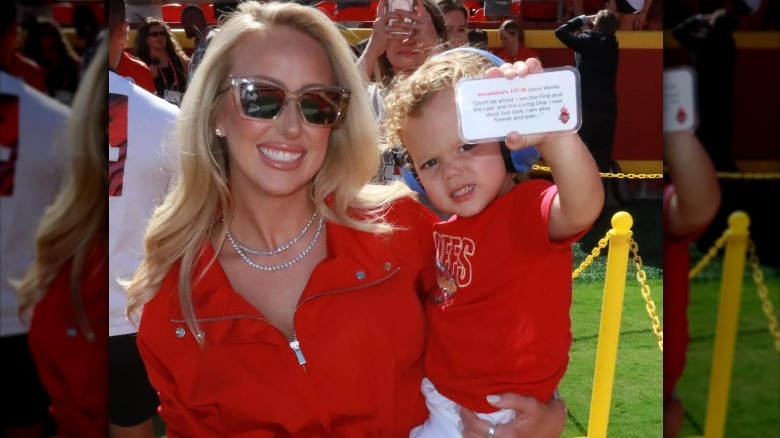 Then again, Brittany isn't your average new mom; when you're an influencer, you have to stay current. And when your branding is all about flaunting your considerable wealth, you have to bring the bling at all times. Though she switches up her accessories from day to day, there's one that stays constant — and notably, it's the priciest one of all. Brittany Mahomes' engagement ring, which she regularly wears to Chiefs games, is believed to have cost anywhere from $350,000 to $800,000. That doesn't deter the former soccer player from wearing it not only at the stadium, but also on family outings to Legoland, the San Diego Zoo, golfing, and apple-picking. When you're not worried about losing a six-figure ring on a kiddie roller coaster, you know you've made it.