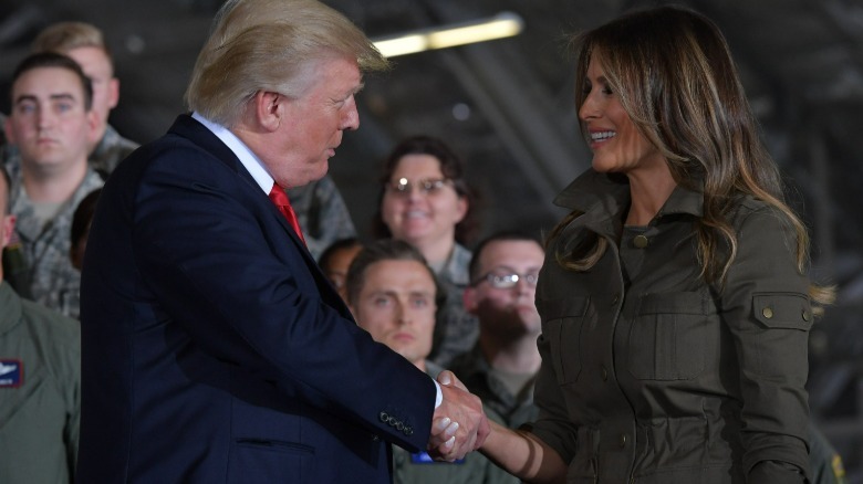 Hilariously, this wasn't the first time this strange interaction between Trump and his wife occurred. In September 2017, Melania introduced her husband at an event, and as he made his way over to his wife, Trump shook Melania's hand exactly like he would someone paying him a visit in the Oval Office. There was no peck on the cheek during this awkward encounter. Melania maintained an uncomfortable smile until her husband sent her on her merry way off the stage.