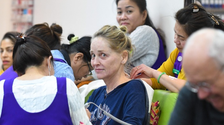 Throughout the 1990s, and especially in the thriller film "Basic Instinct," Stone had a very naturalistic yet noticeable makeup style that made her look like an old-time Hollywood starlet. She applied subtle lip gloss, fine eyeliner, and light blush or highlighter for a smooth, classy effect. Three decades later, as a woman in her 60s, Stone continues wearing discreet makeup that also manages to light up her face, as she did at the 2025 Golden Globe awards. However, sometimes Stone goes out and about without wearing any makeup at all.