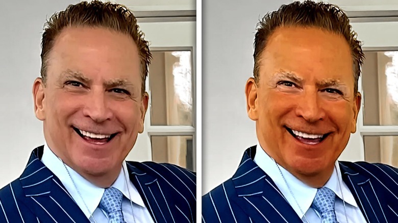 While Karoline Leavitt has fallen into an awful bronzer habit herself, Riccio appears to have escaped this pitfall most of the time. However, The List's Photoshop experiment wasn't the only instance when Riccio's complexion looked unflattering in a photo. An Instagram pic from a September 2024 family event left Riccio looking like he'd skimped on the sunscreen. Maybe it was a camera issue, but the redness made Riccio's face look closer in color to his burgundy tie rather than his usual skin tone.
