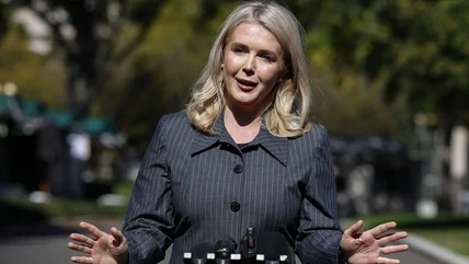 Karoline Leavitt Is Back To Wearing Granny's Sofa Chic (So That's What Happened To The Rose Garden)