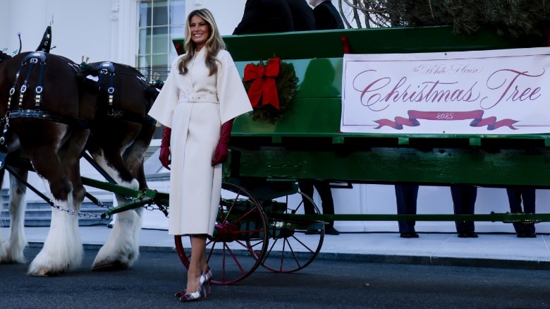 It's beginning to look a lot like Christmas at the White House...and we all know how Melania Trump feels about that. In that bizarre Christmas tape from 2020, Melania was infamously recorded saying, "Who gives a f*** about Christmas stuff and decorations?" (via X, formerly known as Twitter). Nevertheless, five years later, Melania has found herself back in the White House and back in charge of that pesky holiday decor. And, interestingly, that wasn't the only part of today that probably gave the first lady flashbacks to her hubby's first administration. She also re-wore a pricey pair of pumps for the special occasion.