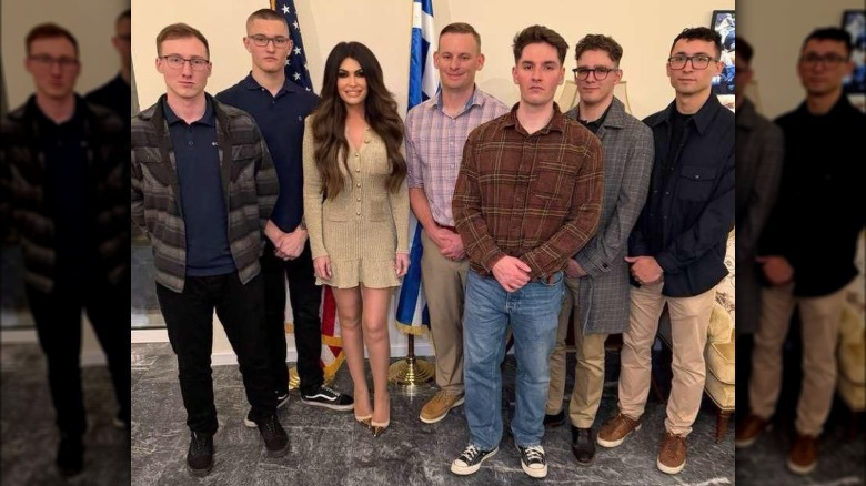 If we needed any proof that the reported style criticism Guilfoyle got from her ex-fiancé, Donald Trump Jr., didn't faze her, the 'fit she sported to celebrate Thanksgiving this year is definitely it. "It can be hard to celebrate the holidays away from home, but we made it special here in Athens," Guilfoyle captioned the photo she posted on Instagram on November 29. She added, "On Thursday, I was honored to host a Thanksgiving dinner for our incredible U.S. Marine Security Guards, whose service, dedication, and presence remind us of the strength and spirit of America, no matter where we are in the world." In the photo, Guilfoyle posed alongside her Thanksgiving dinner guests in one of the last looks most people would want to wear to eat Thanksgiving dinner: a skintight minidress.