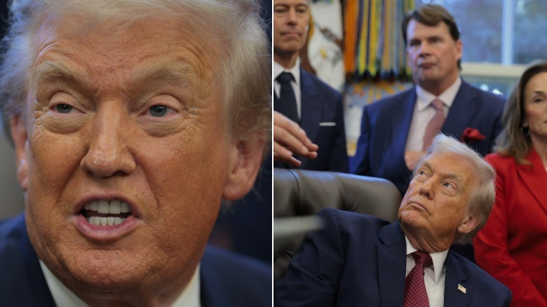 There have been signs that Donald Trump has been slowing down during his second term as president, from his desire to sit down more to The New York Times' report showing how later he begins each day and how he has fewer public engagements compared to 2017. That's not to mention the several jarring photos of Trump without his makeup on, which often reveal just how up in age he truly is. However, ever since the administration revealed that he has chronic venous insufficiency, the president seems to have been slathering on more bronzer than usual.
