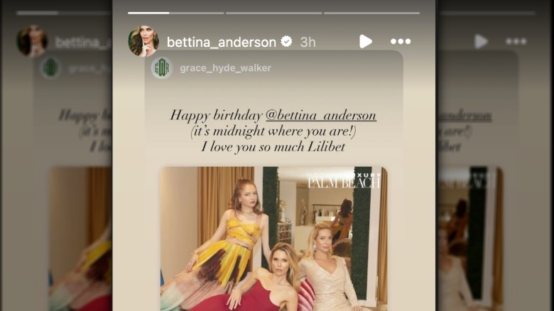 The model was variously hailed as "The Very Best," "Beauty," a "rising star," a "rockstar," an "athlete," an "epic queen," and, from her twin sister Kristina McPherson, "Twinny." Then came the post from fellow Palm Beach socialite Grace Hyde Walker, who gushed, "I love you so much Lilibet." Yep, Anderson shares a nickname with none other than Princess Lilibet, the daughter of Prince Harry and Meghan Markle, the Duke and Duchess of Sussex, who's seventh in line to the throne. Both Bettina and Lilibet are diminutives of Elizabeth, which means "God is my oath," per Nameberry. However, as far as we know, Anderson has never been blasted for using the nickname, which is more than can be said for the Sussexes.