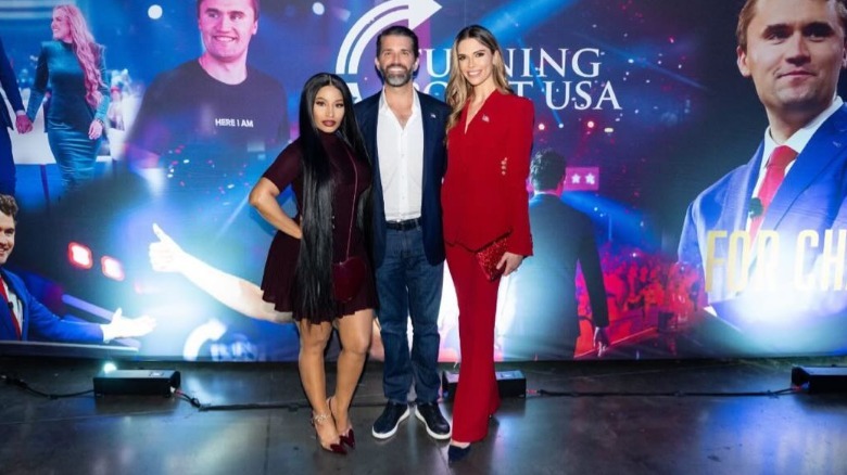 Newly engaged to girlfriend Bettina Anderson, Donald Trump Jr. did the romantic thing by bringing her to AmericaFest 2025 so she could hear him urge all of the young people in the crowd to fight for America by starting a Turning Point chapter on their own campuses. Maybe his fiancée should have done some urging herself — about his wardrobe, that is. The president's eldest son attended the glitzy event in a blazer, jeans, and sneakers, with his white shirt left open collar with no tie. The informality was striking, considering both his businesslike persona and the fact Anderson was turned out in a smart red pantsuit and heels. Was Don Jr. trying to seem relatable to the college kids? If so, he should have checked with his daughter Kai Trump, an actual high school senior, beforehand.