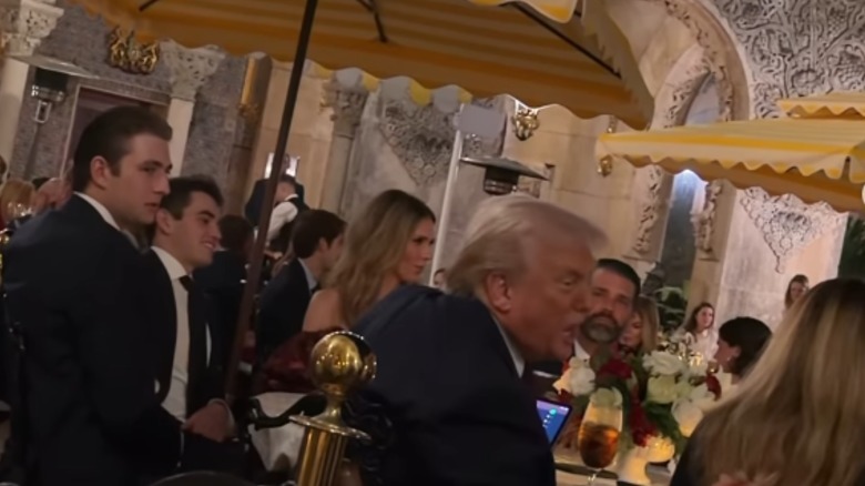 Raised to value privacy, Barron Trump has stayed out of the public eye for much of his life — an impressive achievement for someone from a famous family. The youngest first son appears in public only when necessary, and even then he stays in the background and lets his dad, Donald Trump, bask in the spotlight he craves. Still, when he does grab attention, it's almost always positive. At his father's inauguration, Barron spoke some kind words to Joe Biden as he shook hands with the outgoing commander-in-chief. The college sophomore is described as being polite in person, an intelligent conversationalist, and even riotously funny on occasion. Proving the point, a guest at the Trump family Christmas celebration caught Barron in a rare unguarded moment.