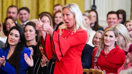 For Greene, this conservative problem with women was made most explicit by the Jeffrey Epstein situation. Her campaign to release the Epstein files and listen to the women who were victims of powerful men made her an enemy of Donald Trump, and an enemy of Trump is an enemy of MAGA. "The Epstein files represent everything wrong with Washington," Greene said, adding, "Rich, powerful elites doing horrible things and getting away with it. And the women are the victims." For Greene, it's clear that Mar-a-Lago face is just one symptom of a much bigger problem.
