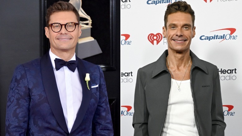 Ryan Seacrest's transformation since his "American Idol" debut and his introduction to the limelight has been fascinating to watch. The "Wheel of Fortune" host has admitted, however, that he is doing everything except the frosted tips to look like that Hollywood newbie again. Talking with his sister on Entertainment Tonight in October 2024, Seacrest said that he had been "over-exercising, eating better, over-training" to get the physique of his 29-year-old self. His hard work has clearly paid off, as seen in side-by-side photos of Seacrest from 2018 and 2025 below. Most notably, his weight has dropped significantly in that time, even reducing the size of his face. This has led some fans to think he has taken his weight-loss regimen to the extreme.