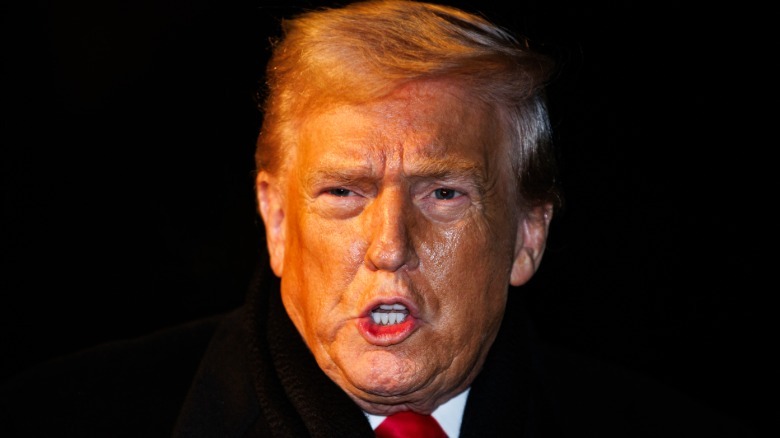 You don't need to keep a close eye on Donald Trump to know that he doesn't have the best relationship with makeup or even with his own hair. However, the POTUS is always ready to surprise us with a new makeup fail, and his January 2026 visit to Davos, Switzerland, proved that. Maybe it's an European thing, but the weather on the other side of the pond doesn't seem to agree with whatever Trump puts on his face. We are, of course, used to him looking orange and we've gotten used to the white patches around his eyes. But photos from this trip showcase a new low for the billionaire. In the below snapshot from just before the president took off for Switzerland, Trump managed to make his face look oily, with several rough spots in which you can see his skin's blemishes — in a nutshell, he managed to highlight everything that makeup is designed to conceal.