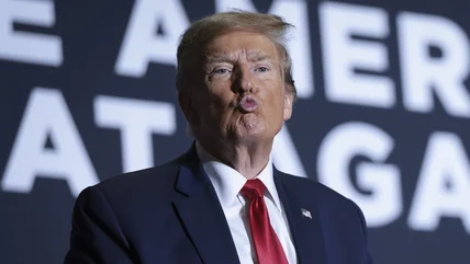 Kim Reynolds had to hold her nose and support Donald Trump in 2024 after her preferred candidate, Ron DeSantis, failed to beat him in the GOP primary. In January 2020, the Iowa governor similarly had no choice but to campaign with the then-sitting president if she didn't want to risk alienating too many members of her party. She also should have held her nose at this rally, as the angle made it look like a close-eyed Trump was about to chomp it.