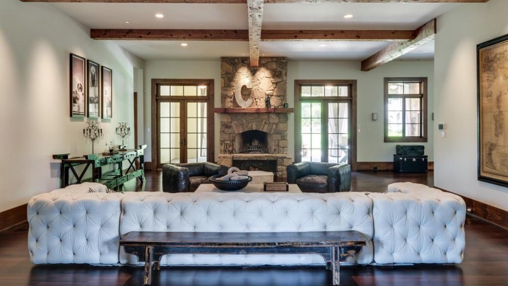 Eagle-eyed fans will spot the giant "C" on the fireplace mantle in the stars' living room, which also features exposed wooden ceiling beams. We love how this space is both cozy and luxurious, but incidentally, this is far from the only room for the home's new owners to relax in. This property also features a movie theater and bar area, as well as a library, and outdoor spaces that look out onto beautiful Tennessee hills.