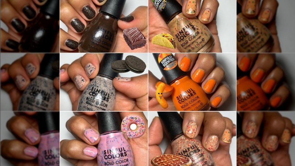 Beyond smelling great, these foodie polishes are pretty high quality and totally symbolic of whatever snack they are representing. For example, the Cheese Puff color has a neon orange shade (reminiscent of the extreme food dyes we often associate with the perfect bed-time snack) as well as a sort of crumbly texture (via Delish). The Taco Tuesday shade looks like someone glammed-up a bag of Cool Ranch Doritos and stuck it in a nail polish — it's really way too cool. If food and pop-culture artist Andy Warhol was a nail polish enthusiast, he would no doubt approve.
