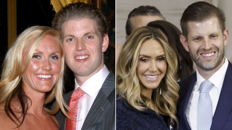 You can always rely on the Trump family to serve some looks that will have us scratching our heads for years. From Donald Trump's disastrous hair to his greasy bronze makeup, he's a never-ending source of cringe looks, but he's not the only one whose appearances sometimes make people do a double take. Lara Trump and Eric Trump have been married since 2014, and side-by-side images make it abundantly clear that they used to look like two completely different people.