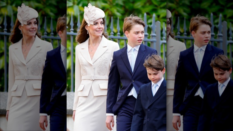 On April 5, William, Prince of Wales and Catherine, Princess of Wales headed to St George's Chapel for the annual Easter service. The royal couple and their three children all dressed in their Easter Sunday best. Interestingly, though, it was George's stature that caught plenty of folks' attention. Despite the fact that Catherine sported a sculptural hat with a bit of height, it looked like George will be nearly as tall as his mom in no time, and he's still got some more years of growing to go.
