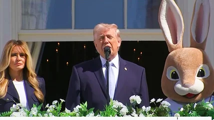 Before the festivities kicked off in earnest, the president and his first lady, Melania Trump, stood on the White House balcony to give a speech. Standing there with them was the Easter Bunny, creating a surreal image as Donald started to discuss the reason for the holiday before switching over to boast about breaking records in the stock market, which, as he gave his Easter speech, was down more than 1000 points since the start of 2026. From there, Donald moved on to the ongoing war with Iran, saying, "You don't mind when the enemy is weak, but that enemy is strong. Not so strong like they were about a month ago. I can tell you, right now they're not too strong at all, in my opinion, but we will soon find out, aren't we?" The twice-elected president went on to discuss the mission to rescue two American pilots who were shot down over Iran before switching over to Venezuela, farmers, eggs, and whether or not they should have bought used fencing for the event.