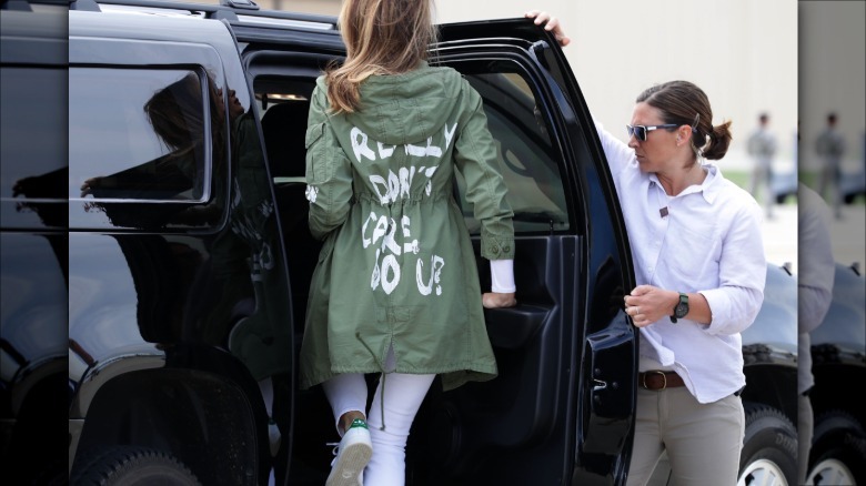 With the aggressive message scrawled across the back, this jacket was clearly a statement. And Melania admitted this to ABC News. She said the jacket "was a kind of message..." Yet she stressed that the message wasn't what people thought. "It's obvious I didn't wear the jacket for the children; I wore the jacket to go on the plane and off the plane," she said. "It was for the people and for the left-wing media who are criticizing me. I want to show them I don't care."
