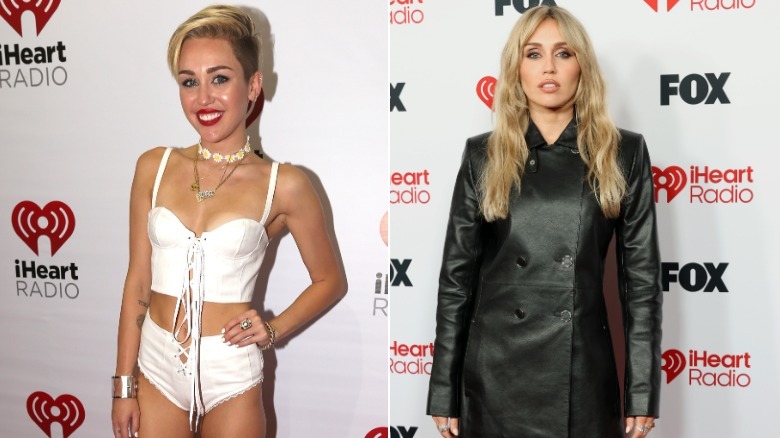 Miley Cyrus didn't wear the most jaw-dropping outfit of her career at the 2013 iHeartRadio Music Awards in the example above, but it was quintessential of that time in her life. The length of her hot pants, her red lipstick, and even her haircut were a bid for attention. In contrast, everything about Cyrus' style choices at the same event in 2026 proved she understood that she could command a room in a different way. Her black ensemble in 2026 was sophisticated and simple.