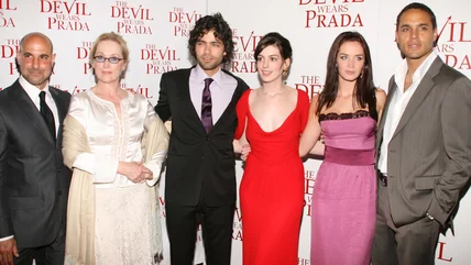 Similarly, Emily Blunt ditched her bland strapless purple dress for a statement beige gown with a layered tulle skirt and a structured bodice featuring a large flower design on the front. Stanley Tucci demonstrated how men's fashion evolved. He wore a gray tie and matching suit in 2006. In 2026, he appeared to have chosen the same tie color, but contrasted it with a black suit. Tucci added pizzazz with black sunglasses.