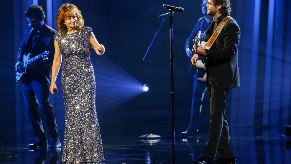 Reba donned a dazzling high-low dress and bedazzled bodice