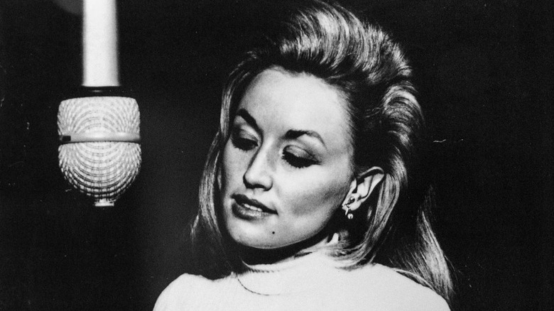 The songstress's passion for big hair dates back to her teenage years when Parton used to moon over pictures in Frederick's of Hollywood catalogs. As Parton explained in her newly released memoir, "Dolly Parton, Songteller: My Life in Lyrics," "I wanted to feel like the way I thought all the movie stars in Hollywood did," via Today. And yet, sometimes, when she was not in front of the audience, Parton recorded music with her natural hair. Both in her memoir and on Instagram, Parton's published photos of one such session. When she did, she left her followers speechless.