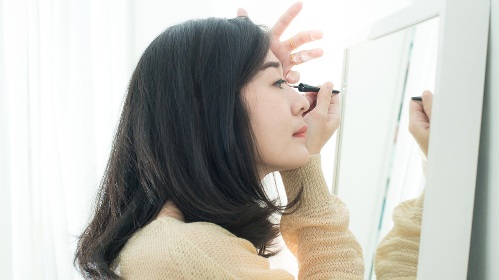 Pure Wow writer Jenny Jin, who herself has lovely monolid eyes, says she usually wears lash extensions, but due to pandemic-related lockdowns, heading to the salon for regular appointments became impossible. During her time at home, Jin has been experimenting with all sorts of different ways to enhance her lashes, saying, "Since my last lash fell off back in March, I have been experimenting with false lashes and eyeliner stamps and all sorts of eye makeup looks to varying levels of success." And then, she discovered a technique on TikTok that she had not seen before.
