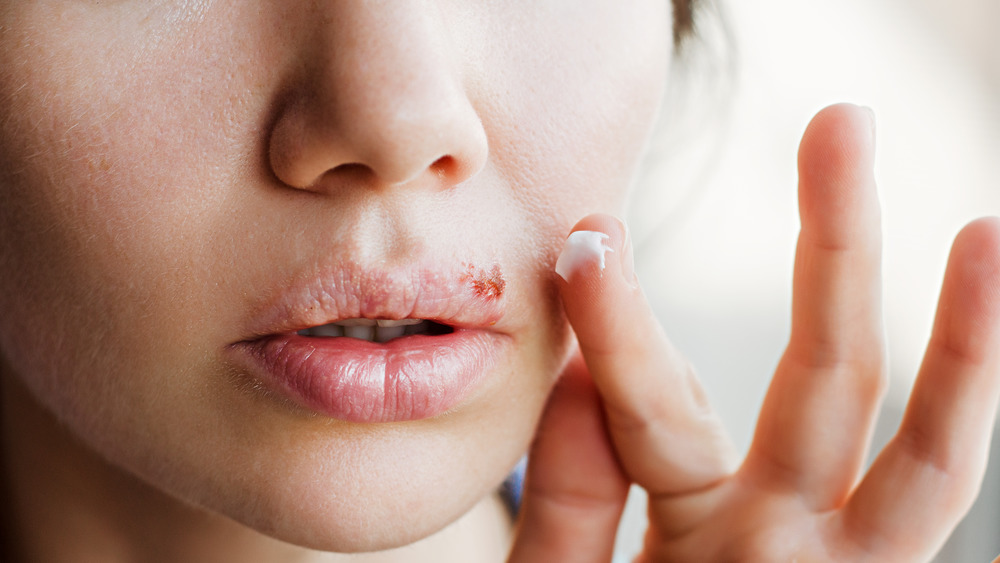 If you struggle with cold sores, you know how irritating (both literally and figuratively) they can be. These tiny, fluid-filled blisters are known to appear on or around the lips, often in clusters. Aside from the visible blemish, cold sores can be accompanied by itching, burning, and tingling around the site of the sore. If the blisters burst, you'll be left with open sores that ooze and then scab over. During a first-time outbreak, it's also possible to experience fever, sore throat, headache, and muscle aches (via Mayo Clinic).