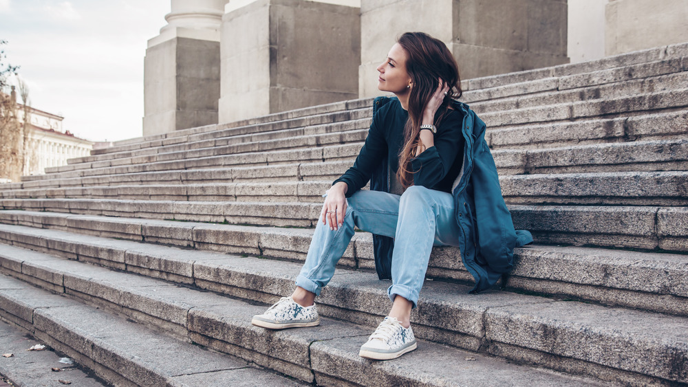 Any time you're having a fashion dilemma, nine times out of ten, TikTok will have an answer for it. A TikTok user posted a simple hack for making your jeans fit more snuggly without the use of scissors or anything else more permanent, and it's honestly genius. She ordered a button pin from Amazon, and inserted it onto the waist of her jeans. Then, she just buttoned her pants using the pin and then boom, hello fitted jeans (via InStyle).
