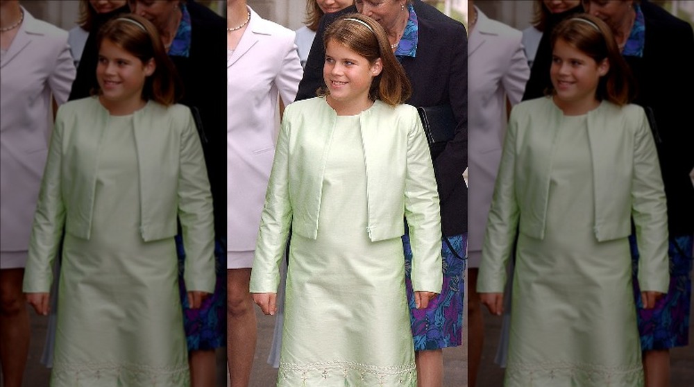 Princess Eugenie was one such '90s kid, and the awkward moment when she appeared at St. George's Chapel in Windsor Castle to celebrate her grandfather's 80th birthday was one to remember. The young princess was in full lime green attire, beading included. The look was topped off with a skinny headband and a tiny purse (think Lizzo but far less trendy). That wasn't the only time that the outfit made an appearance, either — Eugenie was spotted in a similar getup at the Queen Mother's 101st birthday celebration the same year.