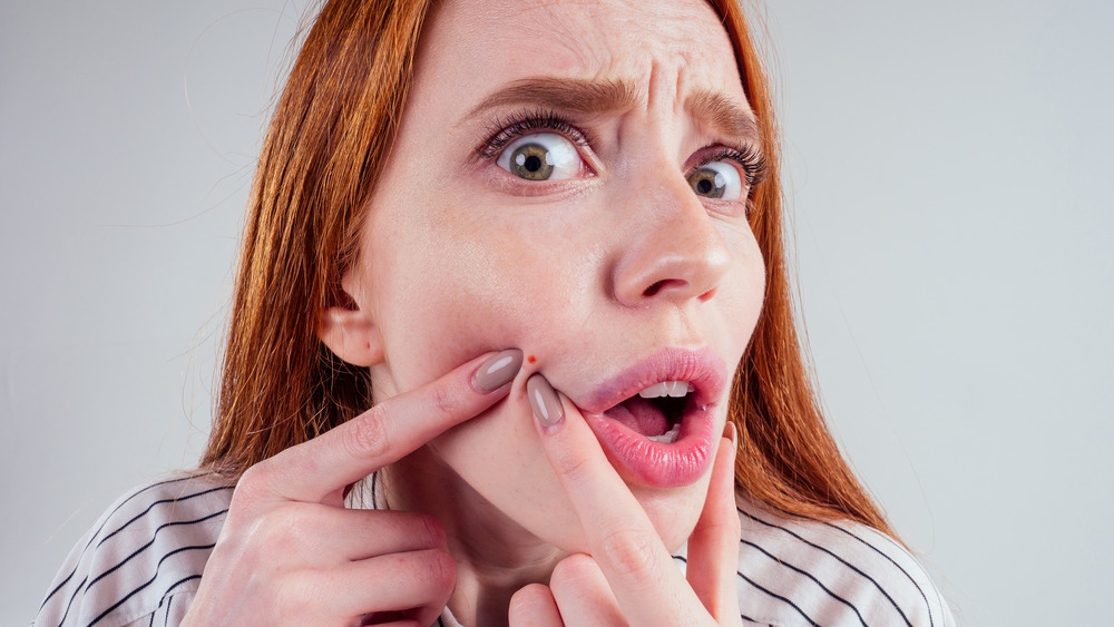 Everyone deals with blackheads. Even celebs like Cardi B need help with them. It's tempting to try to extract that blackhead when you see it pop up on your nose or chin. Perhaps you have an extraction tool, or maybe you just grab a bobby pin. However, you should think twice about removing them yourself the next time you see one of the dreaded blemishes. Doing so risks causing long-term skin damage like permanent scarring and dark spots (via Garnier).