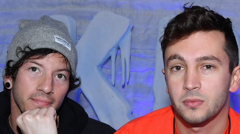 Twenty One Pilots are one of the most successful musical duos of the moment, and with their 2021 single "Shy Away," it doesn't look like they're slowing down anytime soon. Tyler Joseph and Josh Dun shot to the top of the charts in late 2015 with their hit single "Stressed Out" and have continued to achieve massive success ever since (via Billboard). For example the Billboard Hot 100 Top 10 track was the third single from Twenty One Pilot's fourth studio album, "Blurryface" (via AllMusic). The break-out album hit No. 1 on the Billboard 200 Album Chart and has been certified four-times platinum by the RIAA (via Loudwire). "Blurryface" also helped the duo earn their first GRAMMY Award in 2016 for Best Pop Duo/Group Performance.