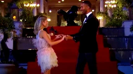 Eventual front-runner Cassie Randolph stole Bachelor Colton Underwood's heart from night one. Wearing a midi white dress with pink and lilac flowers, Randolph's dress stood out from the sea of sequins and the staple black and red dresses. Paired with simple strappy sandals, Randolph's simple make-up accentuated her natural beauty.