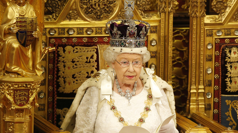 For instance, according to Newsweek, the queen is always the first in line in any procession she appears in, and always walks ahead of everyone else — including her own family members — when entering a room. Even her late husband, Prince Philip, was obliged by tradition to walk two paces behind her throughout their married life. This means that cutting in front of her, even inadvertently, is a serious no-no, and violating this rule has gotten high-flyers into big trouble with the etiquette police. For instance, Grazia reports that during his 2018 visit with the queen, then-President Donald Trump set tongues wagging by stepping in front of her during their joint inspection of the Guard of Honour, blocking the queen's view completely.