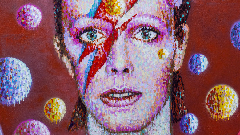 It's hard to choose the most iconic Bowie look, as they're all memorably unique in different ways. But one look that will forever be linked to the musician is the lightning bolt striking across his face on the album cover for his 1973 release "Aladdin Sane." Following Bowie's death in 2016, the world was flooded with various interpretations of the lightning strike (via The Independent) — so much so that astronomers gave the musician his own constellation in the exact shape of the bolt from "Aladdin Sane" (via the Guardian).