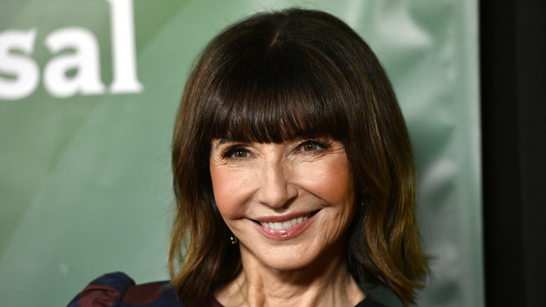 Blunt straight-across bangs look great if you have the right face shape. They're particularly flattering on long or oval face shapes, as noted by Dermstore, which is why they look so good on actress Mary Steenburgen. Her dark hair makes the look more dramatic, and the bangs skirt right above her eyebrows, drawing attention to her eyes.