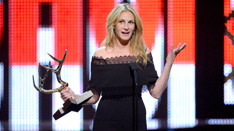 Fortunately for Roberts, there were many who didn't think she sucked at all, and she quickly became a household name. Roberts attended her first Golden Globes in 1990, and was clearly a newbie. "She wore a store-bought suit from Giorgio Armani," InStyle's Dana Avidan-Cohn said (via ET Online). "She went in and bought the suit herself, and that's what she wore."