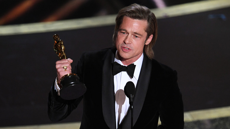 While he had previously won an Oscar for producing "12 Years a Slave," Pitt's role as Cliff Booth in the film would ultimately win him his first acting Oscar for Best Supporting Actor in 2020. Winning the award was an emotional moment for Pitt. He "teared up" as he reflected on his early acting days and thanked Ridley Scott and Geena Davis for giving him his break on "Thelma & Louise." He finished his speech thanking his kids "who color everything I do. I adore you" (via Harper's Bazaar).