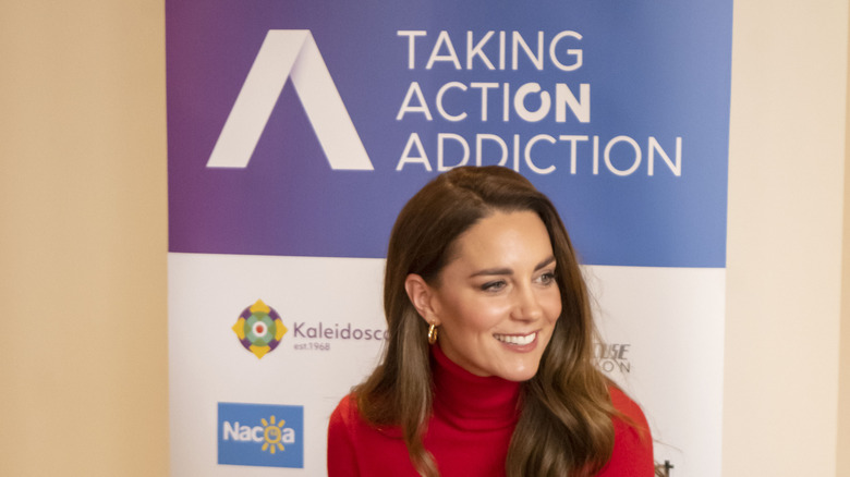 Back in January 2012, when Kate Middleton's very first patronages were announced, one of them was the charity Action on Addiction, per the Los Angeles Times. The organization expressed its excitement at the time, saying the duchess' highly public role would bring awareness to a subject that can often be taboo to discuss. Since then, Kate has continued to support the charity and became patron of the Forward Trust when it merged with Action on Addiction in June 2021, per People. She's visited treatment centers to meet those facing addiction, and even served up mocktails at an alcohol-free bar run by Action on Addiction during the BBC special "A Berry Royal Christmas" (via The Sun).