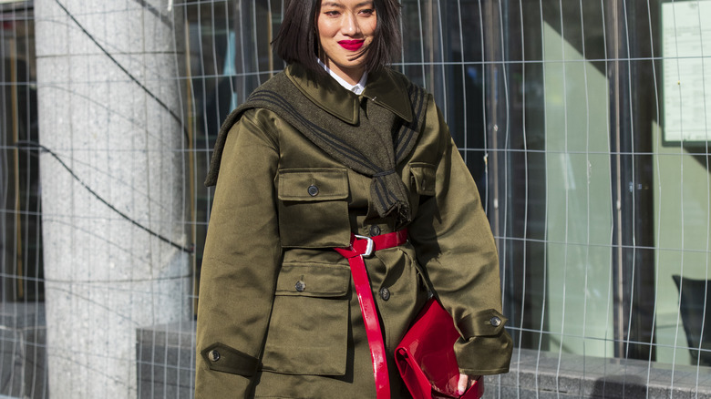 We couldn't round out our list without giving a shout-out to one of the most functional coat styles of all: the ever-practical utilitarian coat. This style prizes effectiveness, and typically features tons of pockets for storing your phone, keys, wallet, and anything else you need on the go. Who doesn't want that? We've come to think that handbags just weigh us down, so no matter how much we love our vintage leather crossbody bags, we wouldn't mind switching them out for a pocket-filled coat instead. Apart from the obvious functionality, utility coats are adorable, too — and extremely on trend (via InStyle). Think about what kind of style you prefer to emulate, and run with it. You can go for a dark green, classic military-inspired coat, or instead go for a Y2K-inspired version that's equal parts puffy and pocketed.