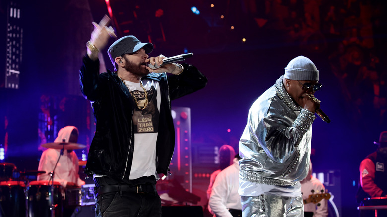 If you were one of the thousands to tune in to the Super Bowl, chances are you caught the halftime show. Or, should we say, if you were one of the thousands to tune into the halftime show, you may have caught the Super Bowl. Super Bowl LVI's performance had the internet buzzing from the moment it was announced, as it featured a variety of headliners, all with iconic hits of their own. Among Dr. Dre, Snoop Dogg, Kendrick Lamar, and Mary J. Blige was Eminem, the famed rapper whose music defined a generation. Eminem — born Marshall Bruce Mathers — may have hit his career peak back in the early 2000s, but his halftime performance proved the rapper still has what it takes to get a stadium on its feet.