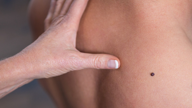 When it comes to changing moles, dermatologists always recommend watching out for ABCDE. "A" stands for asymmetry. Look for a mole that is abnormally shaped, rather than a circle. "B" is for borders. If a mole's border is changing, get it checked out. "C" is for color, so check to see if any of your moles have changed colors or are multi-colored. "D" stands for diameter. Any mole larger than six millimeters needs to be seen by a dermatologist. Finally, "E" stands for evolving. Any mole that is changing, especially one that starts bleeding, itching, or crusting over is concerning.