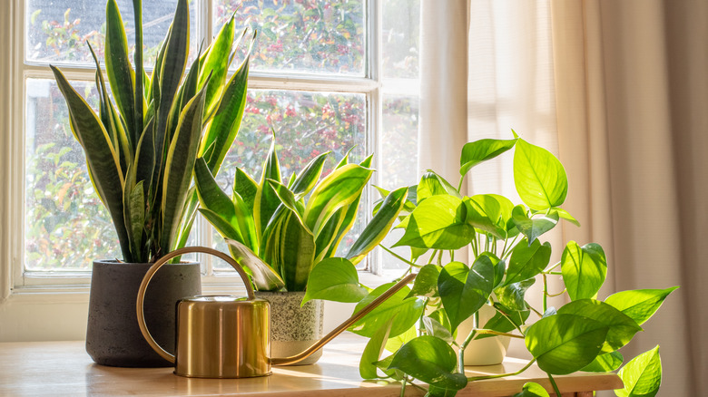 While their name may seem slightly intimidating, once you discover how to best care for them, snake plants are relatively easy to grow. This is why they're a great indoor plant for beginners. You'll need to intermittently place the snake plant in direct sunlight, and be sure to water them regularly, but don't overwater! (per The Spruce). Snake plants can easily rot from being watered excessively, so you'll want to follow close instructions when hydrating them.