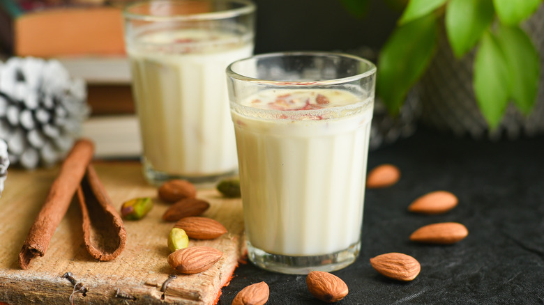 In the world of plant-based milk, almond milk is the number one selling milk in North America, and though you might think milk alternatives are a new innovation, people in the Middle East were using almond milk as early as the 13th century, per Food Manufacturing. According to Healthline, almond milk is rich in vitamin E and has fewer calories and protein than cow's milk. Almonds are very healthy, but there is one big problem with almond milk.