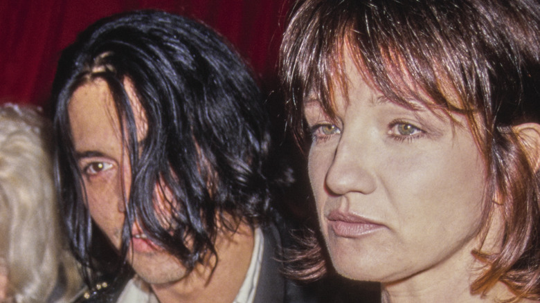 Johnny Depp's string of romances continued through the 1990s with a brief affair he had with actor Ellen Barkin, who was nearly a decade older than him. At the time of their fling, Barkin was separated from her then-husband, Irish actor Gabriel Byrne. As per The Guardian, Barkin and Byrne separated in 1993 on amicable terms before ultimately divorcing in 1999. A short-term romance thus ensued between Depp and Barkin in 1994, with the pair flaunting their linkup during red carpet appearances at fashion shows and even the Golden Globes (per Vanity Fair).