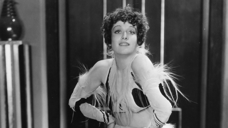In 1928, Crawford appeared in "Our Dancing Daughters," a critically praised film about flappers, according to Variety. Fittingly, Crawford had a slim, boyish figure, which was seen as the ideal body type for women during the 1920s. She also had thin, overly plucked eyebrows, light blue eyes, and hair that was styled in soft waves, matching the quintessential flapper aesthetic. Even legendary author F. Scott Fitzgerald commented on her remarkable style, stating, "Joan Crawford is doubtless the best example of the flapper, the girl you see in smart night clubs, gowned to the apex of sophistication, toying iced glasses with a remote, faintly bitter expression, dancing deliciously, laughing a great deal, with wide, hurt eyes. Young things with a talent for living" (via Roger Ebert).