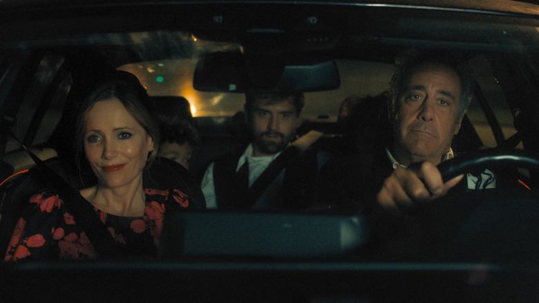 "Cha Cha Real Smooth" is a heartfelt coming-of-age movie about 22-year-old Andrew, played by the film's writer and director Cooper Raiff. After graduating college, he has no plan for his future and ends up living back at home with his mom (played by Leslie Mann), younger brother, and stepdad. Andrew eventually discovers what he wants by forming a friendship with another local mom, Domino (played by Dakota Johnson), and her daughter, Lola. But, one of the most interesting relationships throughout the film is that between Andrew and his stepdad Greg, played by Brad Garrett.