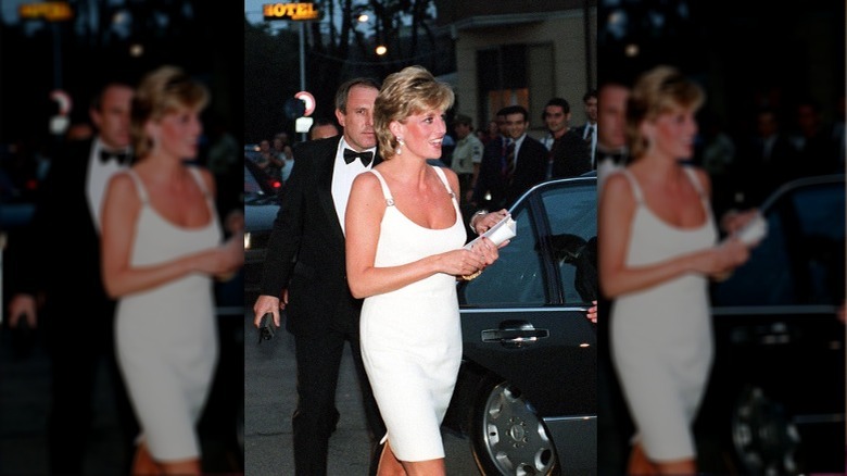 Two of her most memorable were from Gianni Versace: the little white dress with gold detailing on the straps, which she wore to a 1995 concert, and a similar black dress she wore to the premiere of "Apollo 13" in London. The princess' confidence clearly came through in these simple, stunning looks. Per Glamour, the white dress "[topped] Best Dressed lists," while her black dress and pearl earrings combo was "perfection." Versace himself even saw the princess' spark. "I had a fitting with her ... and she is so serene. It is a moment in her life, I think, when she's found herself — the way she wants to live," he said in 1997.